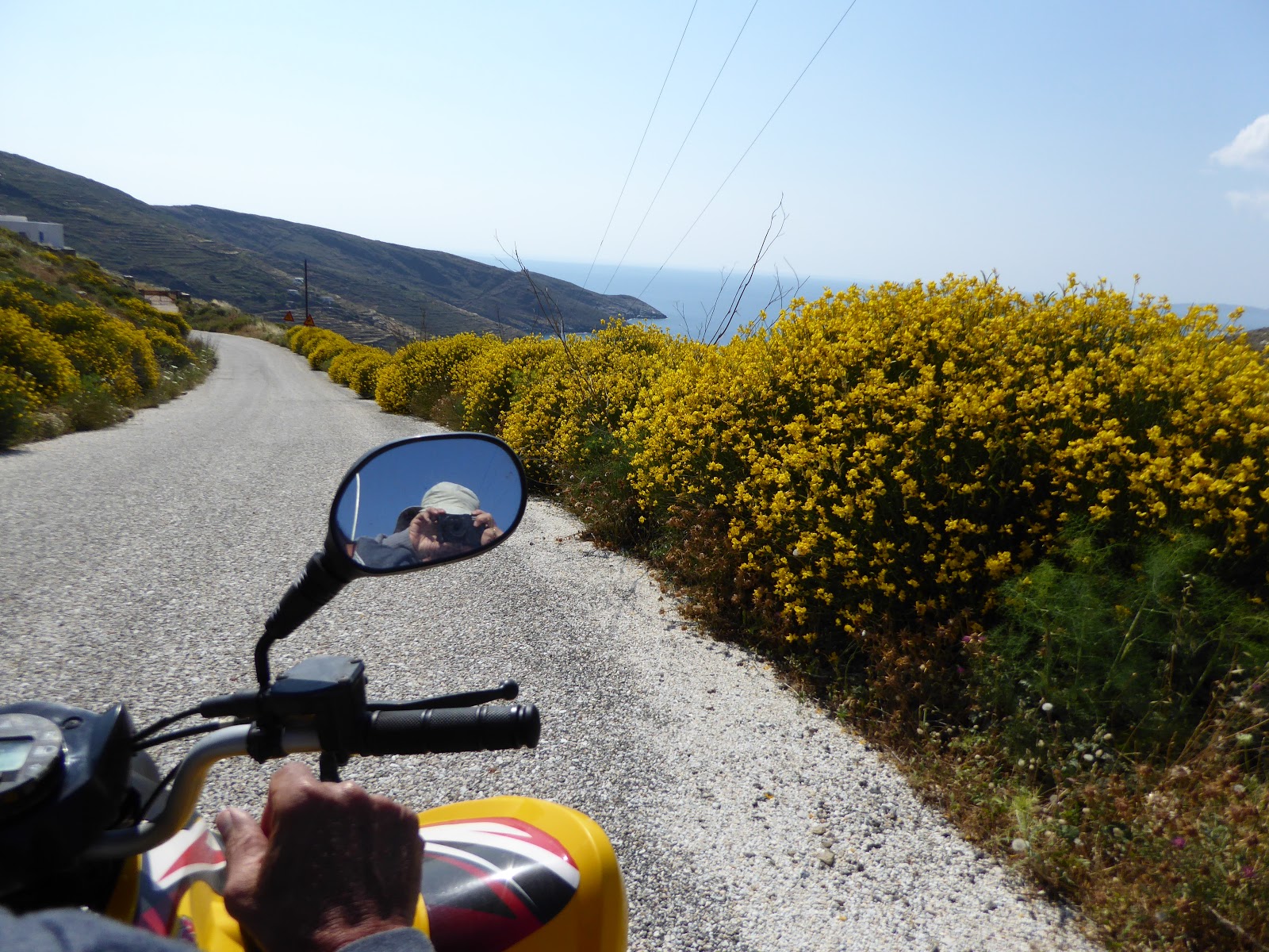 שלחתי את הנהגוס, לשכור רכב על מנת שנתור את האי, כמובן “יוסי ילד שלי מוצלח”. חזר עם משהו אחר… טרקטורון צהוב בוהק עם דגלון של נס המרד. הטענה הרשמית הייתה שאין רכבים, הטענה האמיתית לדעתי, זה שהתחשק לו כזה כלי… לכל דבר יש פעם ראשונה בחיים, אז הנה הפעם הראשונה שלי על הכלי המצחיק הזה שגם קצת מפחיד ולא הכי נוח למי שיש לו נתונים פיזיים קצרים…